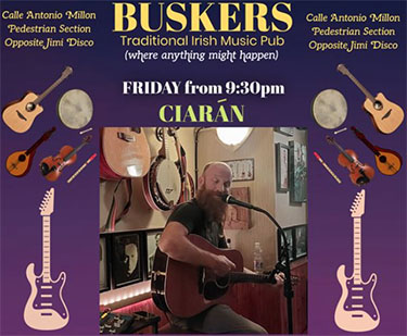 NERJA – De Ierse zanger en gitarist Cíarán Ó´Cuínneagáin treedt vrijdagavond 5 juli op bij Buskers Irish Pub in Nerja. De bar is te vinden aan de Calle Antonio Millon in het centrum van de stad.
