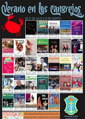 ,,De achterliggende gedachte van de serie ´Verano en Cangrejos´ is het aanbieden van een gratis toegankelijk open lucht-programma voor het hele gezin´´, voegde ze er aan toe. De shows variëren zoals ieder jaar van theater en poëzie tot muziek en/of flamenco-optredens, dansshows, musicals en kindershows. Alle voorstellingen beginnen om 22.00 uur ´s avonds, met uitzondering van de zondagse kindervoorstellingen welke om 21.00 uur beginnen.