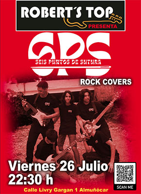 ALMUNECAR – Bij bar/restaurant Robert’s Top in Almuñécar staat vrijdagavond 26 juli een optreden geprogrammeerd van de rockformatie Seis Puntos de Sutura (SPS). Het optreden begint rond 22.30 uur.