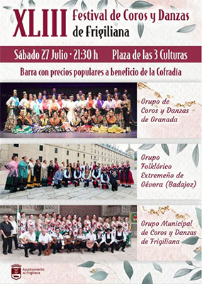 FRIGILIANA – De 43e editie van het Festival de Coros y Danzas staat zaterdagavond 27 juli op de agenda in het dorp Frigiliana, zeven kilometer boven Nerja gelegen. Het evenement vindt plaats op het Plaza de las 3 Culturas en begint rond 21.30 uur.