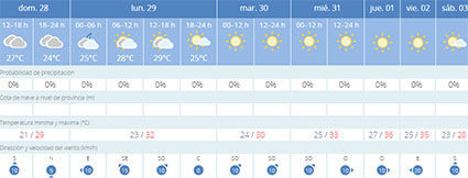 NERJA – De temperaturen boven en rond Nerja lopen de komende week nog iets verder omhoog. Het weerstation Aemet (Agencia Estatal de Meteorología) verwacht daarbij aan het einde van de komende week gemiddelde dagtemperaturen van circa 36 graden Celsius.