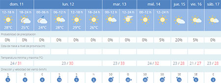 NERJA – Nerja en omgeving kunnen de ook komende week rekenen op veel zon en gemiddelde dagtemperaturen van meer dan 30 graden Celsius. Dit verwacht van de Spaanse meteorologische dienst Aemet (Agencia Estatal de Meteorología) in haar meest recente weersvoorspellingen.