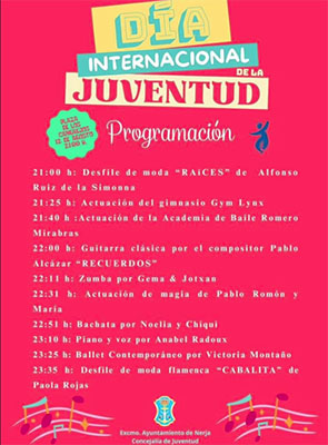 NERJA – De jaarlijkse evenementenserie ´Verano en Los Cangrejos´ in Nerja staat maandagavond 12 augustus in het teken van de Internationale Día de la Juventud (´Dag van de Jeugd´).
