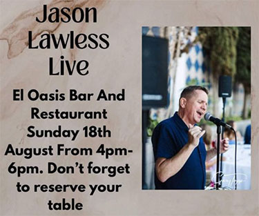 PUNTA LARA – Bij Bar Oasis in Punta Lara, een dorp aan de kust nèt buiten Nerja richting Torrox, treedt zondagmiddag 18 augustus de zanger Jason Lawless op. De bar is te vinden aan de Calle María 2.