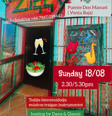 Het duo treedt veel op in de Axarquía-regio. Naast het optreden van ´Dana & Gianni´ is er een jam-session waarvoor iedereen is uitgenodigd zijn/haar eigen instrument mee te nemen.