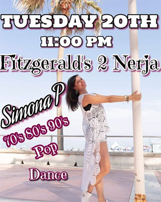 NERJA – De zangeres Simona Pittari treedt dinsdagavond 20 augustus op bij Fitzgerald’s Bar II, in het centrum van Nerja aan de Calle Antonio Millón 2. Het optreden begint rond 23.00 uur, de toegang is vrij.