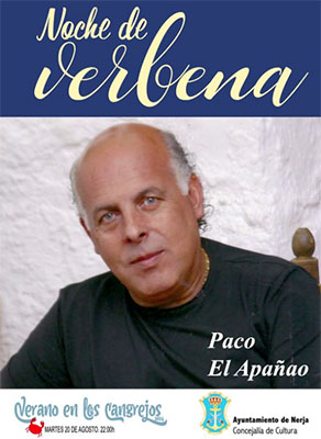 Het optreden van Paco El Apañao begint om circa 22.00 uur en staat in het kader van de reeks ‘Verano en Los Cangrejos’. Dit is een serie aan optredens met zangers, zangeressen, musici, bands, artiesten en dansgroepen die gedurende de maand augustus iedere avond zijn te zien en te beluisteren op het plein vlak naast het strand van Torrecilla in Nerja. De toegang is gratis.