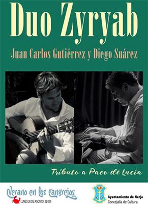 NERJA – Het Dúo Zyryab treedt maandagavond 26 augustus op tijdens de zomerserie aan culturele evenementen op het Plaza de Fábrica de los Cangrejos in Nerja. Het duo brengt vooral (flamenco)gitaar en pianomuziek ten gehore.
