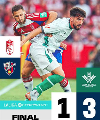 Zeven minuten later bracht Martin Hongla zijn ploeg terug in de wedstrijd (1-2). Granada ging vervolgens verwoed op jacht naar de gelijkmaker, maar kreeg daarbij diep in blessuretijd (98ste minuut) het deksel op de neus. Javi Mier tekende voor de 1-3 en verzekerde Huesca daarmee van de drie punten.