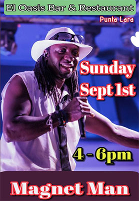 PUNTA LARA – Bij Bar Oasis in Punta Lara, een dorp aan de kust nèt buiten Nerja richting Torrox, treedt zondagmiddag 1 september ‘The reggae rock star Magnet Man’ op. De bar is te vinden aan de Calle María 2.