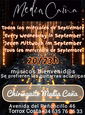 TORROX – Bij Chringuito Medía Caña in de kustplaats Torrox treedt woensdagavond 4 september het regionaal vermaarde duo Dana Andrews & Gianni Piras op. Medía Caña is te vinden aan de Avenida del Peñoncillo 46 in Torrox, op circa tien kilometer van Nerja.