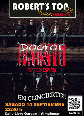 ALMUNECAR – In bar/restaurant Robert’s Top in Almuñécar staat zaterdagvond 14 september een optreden geprogrammeerd van de band Doctor Fausto. Het optreden begint rond 22.30 uur en duurt tot circa middernacht.
