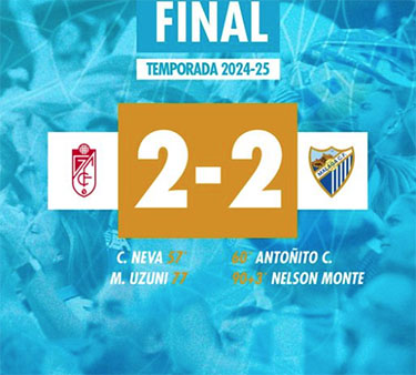 Een kwartier voor tijd zette clubtopscorer Myrto Uzuni zijn club Granada voor de tweede keer op voorsprong (2-1). Málaga bleef knokken om de ongeslagen status te behouden, hetgeen in blessuretijd leidde tot de gelijkmaker. Nélson Monte tekende in de 93ste minuut voor de 2-2 eindstand.