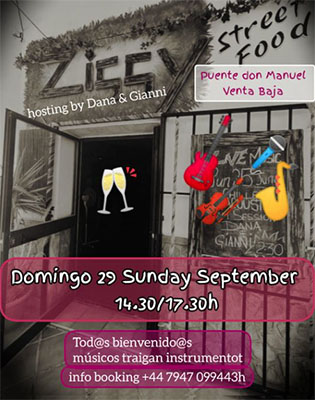 Het duo treedt veel op in de Axarquía-regio. Naast het optreden van ´Dana & Gianni´ is er een jam-session waarvoor iedereen is uitgenodigd zijn/haar eigen instrument mee te nemen.