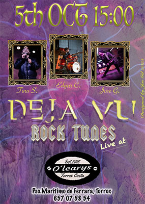 TORROX – De formatie Deja Vu speelt zaterdagmiddag 5 oktober voor het eerst bij de Ierse pub O’Leary’s in Torrox. Het optreden begint rond de kok van 15.00 uur.