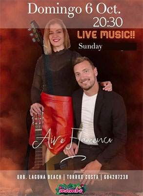 TORROX – Bij Chiringuito Mambo in Torrox treedt zondagavond 6 oktober de formatie Aire Flamenco op. Het optreden begint om circa 20.30 uur.
