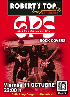 ALMUNECAR – Bij bar/restaurant Robert’s Top in Almuñécar staat vrijdagavond 11 oktober een optreden geprogrammeerd van de rockformatie Seis Puntos de Sutura (SPS). Het optreden begint rond 22.00 uur.