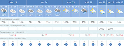 Koud word het in ieder geval niet rond Nerja met daggemiddelden van circa 24 graden Celsius. Ook de wind laat het de komende week zo goed als afweten in de voorspellingen van de meteorologen.
