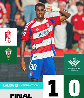 GRANADA – In het eigen voetbalstadion Los Cármenes had Granada CF zondagmiddag 13 oktober de handen meer dan vol aan het bezoekende Córdoba CF. Via een treffer in blessuretijd (91ste minuuut) van spits Siren Diao pakte de thuisclub tóch een 1-0 winst op Córdoba, dat de gehele tweede helft met een man minder speelde na een rode kaart (zes minuten voor rust) voor Theo Zidane.