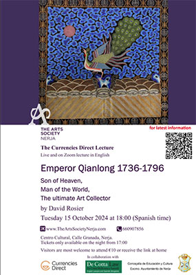 NERJA – Bij de Arts Society Nerja kan dinsdagavond 15 oktober een Engelstalige lezing worden bijgewoond. Deze wordt verzorgd door David Rosier en heeft als titel ‘Emperor Qianlong 1736-1796´.