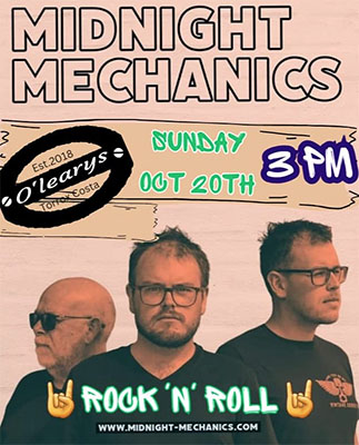 TORROX – In de kustplaats Torrox, op circa tien kilometer van Nerja gelegen, treedt zondagmiddag 20 oktober de band Midnight Mechanics op bij O’Learys Irish Bar aan de Paseo Maritímo de Ferrara.