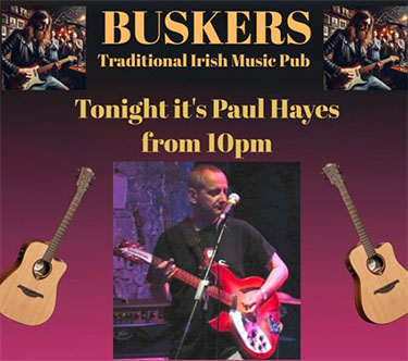 NERJA – De zanger/gitarist Paul Hayes speelt zaterdagavond 26 oktober bij Buskers Irish Pub in Nerja. De bar is te vinden aan de Calle Antonio Millón, het optreden begint rond de klok van 22.00 uur en is gratis toegankelijk.