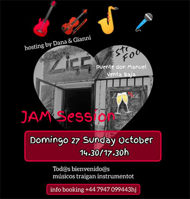 Het duo treedt veel op in de Axarquía-regio. Naast het optreden van ´Dana & Gianni´ is er een jam-session waarvoor iedereen is uitgenodigd zijn/haar eigen instrument mee te nemen.