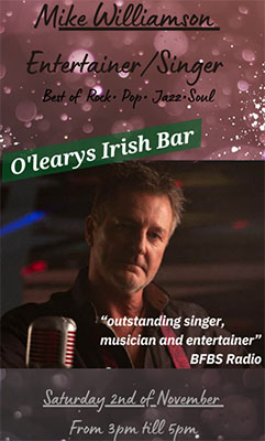 TORROX – De zanger en gitarist Mike Williamson speelt zaterdagmiddag 2 november voor het eerst bij de Ierse pub O’Leary’s in Torrox. Het optreden begint rond de kok van 15.00 uur en duurt circa twee uur.