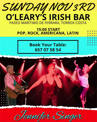 TORROX – De zangeres Jennifer Singer debuteert zondagmiddag 3 november bij de Ierse pub O’Leary’s in Torrox. Het optreden begint rond de kok van 15.00 uur.