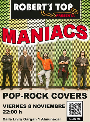 ALMUNECAR – In bar/restaurant Robert’s Top in Almuñécar staat vrijdagavond 8 november een optreden geprogrammeerd van de band The Maniacs. Het optreden begint rond 22.00 uur.