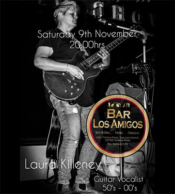 TORROX – In bar Los Amigos in de kustplaats Torrox treedt zaterdagvond 9 november de zangeres en gitariste Laura Killeney op. De bar is te vinden in de urbanisatie Torrox Park aan het Centro Commercial 1b.