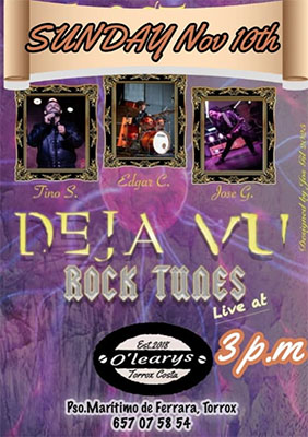 TORROX – De formatie Deja Vu speelt zondagmiddag 10 november bij de Ierse pub O’Leary’s in Torrox. Het optreden begint rond de kok van 15.00 uur.
