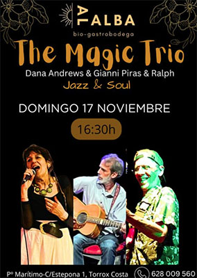 TORROX – In de kustplaats Torrox, op circa tien kilometer afstand van Nerja, treedt zondagavond 17 november de band The Magic Trio op. Dit gebeurt bij bio-en gastrobodega Al Alba aan de Calle Estepona 1 in Torrox.