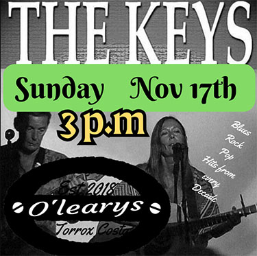 TORROX – De formatie The Keys treedt zondagmiddag 17 november op bij O’Learys Irish Bar aan de Paseo Maritímo de Ferrara in Torrox.