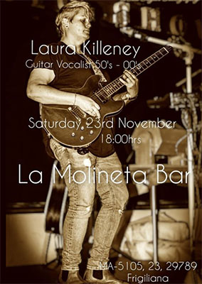 FRIGILIANA – De zangeres en gitariste Laura Killeney treedt zaterdagavond 23 november op bij bar La Molineta Frigiliana. Deze bar is te vinden aan de Carretera Frigiliana (MA 5105), de weg tussen Nerja en Frigiliana.
