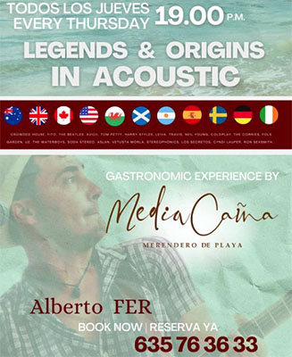 TORROX – Bij Chringuito Medíacaña in de kustplaats Torrox treedt donderdagavond 5 december de regionaal vermaarde gitarist Alberto Fer op. Medía Caña is te vinden aan de Avenida del Peñoncillo 46 in Torrox, op circa tien kilometer van Nerja.