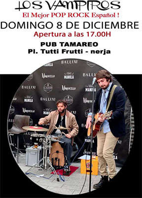 Band Los Vampros speelt bij Tamareo op Tutti Frutti NERJA – De Spaanse band Los Vampros speelt zondagavond 8 december bij Dance Club Tamareo op het uitgaansplein Tutti Frutti van Nerja. Tamareo is te vinden aan het Plaza Tutti Frutti 2 in het centrum van Nerja en is geopend vanaf 17.00 uur. Delen: Klik om te delen op X (Opent in een nieuw venster) X Klik om te delen op Facebook (Opent in een nieuw venster) Facebook Vind-ik-leuk Aan het laden...