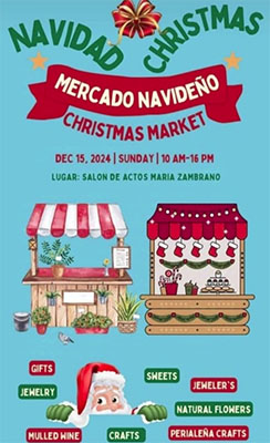 Kerstmarkt in Periana PERIANA – In het bergdorp Periana wordt zondag 15 december een kerstmarkt gehouden. Deze vindt plaats in de lokale Salon de Actos Maria Zambrano. De kerstmarkt duurt van 10.00 uur tot 16.00 uur. Delen: Klik om te delen op X (Opent in een nieuw venster) X Klik om te delen op Facebook (Opent in een nieuw venster) Facebook Vind-ik-leuk Aan het laden...