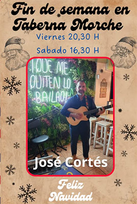 EL MORCHE – De Spaanse (flamenco)zanger en gitarist José Cortés speelt zowel vrijdagavond 13 december als zaterdagmiddag 14 december bij Taberna El Morche in de gelijknamige kustplaats aan de N-340 tussen Nerja en Málaga.