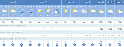 NERJA – De weerkundigen van de meteorologische dienst Aemet (Agencia Estatal de Meteorología) voorzien deze week wisselvallige dagen qua weertype. Waar maandag 16 december een gemiddelde dagtemperatuur van 17 graden wordt voorzien, loopt die de komende dagen gestaag op naar zelfs 23 graden Celsius op donderdag 19 december. Daarna gaan de temperaturen weer naar beneden, zo verwachten de weerkundigen.