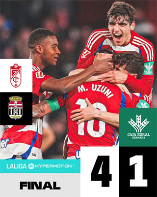 GRANADA – In de midweekse competitiewedstrijd voor de Segunda División tegen FC Cartagena heeft de Andalusische voetbalclub Granada CF dinsdagavond 17 december een ruime 4-1 zege geboekt. Granada was in het eigen Nuevo Las Cármenes-stadion beduidend sterker dan de bezoekers.