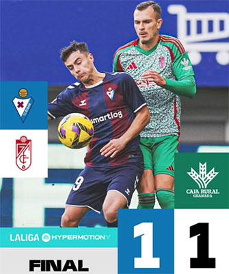 EIBAR – Voetbalclub Granada CF is in de competitiewedstrijd voor de Spaanse Segunda División er niet in geslaagd drie punten over te houden aan het uitduel met het Baskische Eibar SD. De Andalusische formatie, die het laatste half uur met tien man speelde, moest zaterdagmiddag 21 december in het Estadio Municipal de Ipurua genoegen nemen met een 1-1 gelijkspel.