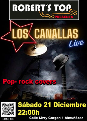 ALMUNECAR – De band Los Canallas speelt zaterdagavond 21 december bij bar/restaurant Robert’s Top in Almuñécar.