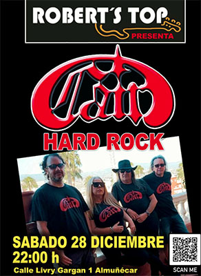 ALMUNECAR – Bij bar/restaurant Robert’s Top in Almuñécar staat zaterdagavond 28 december oktober een optreden geprogrammeerd van de hardrockformatie Cain. Het optreden begint rond 22.00 uur.