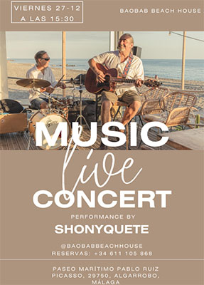 ALGARROBO – De gitarist/zanger Shony treedt vrijdagmiddag 27 december op bij Baobab Beach House in Algarrobo. De bar is te vinden aan de Paseo Maritímo Pablo Ruiz Picasso 3 in de kustplaats.
