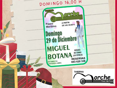 EL MORCHE – De Spaanse zanger Miguel Botana treedt zondag 29 december op bij Taberna El Morche in de gelijknamige kustplaats aan de N-340 tussen Nerja en Málaga.