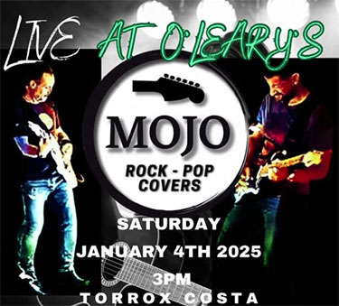 TORROX – De coverband Mojo speelt zaterdagmiddag 4 januari bij de Ierse pub O’Leary’s in Torrox. Het optreden begint rond de klok van 15.00 uur.