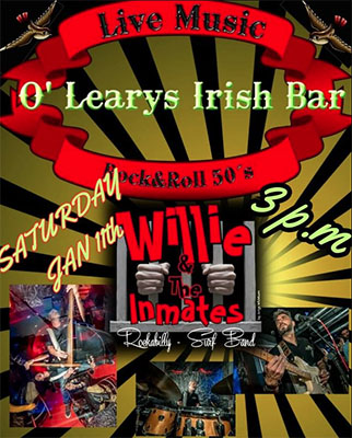 TORROX – De band Willie & The Inmates treedt zaterdagmiddag 11 januari op in de kustplaats Torrox, op circa tien kilometer van Nerja gelegen. Dit gebeurt in O’Leary’s Irish Bar aan de Paseo Maritímo de Ferrara.