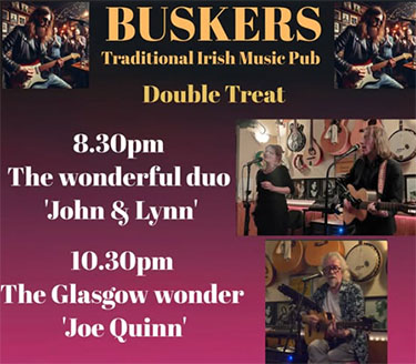 NERJA – Het duo John & Lynn treedt zondagavond 12 januari op bij Buskers Irish Pub aan de Calle Antonio Millón in het centrum van Nerja.