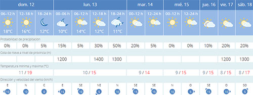 Met ingang van maandag 13 januari is er vrij veel bewolking rond Nerja voorzien, iets dat de dagen daarna zal aanhouden. De kans op neerslag is uiterst gering voor de komende week, wel gaat de wind bij tijd en wijle de kop opsteken.